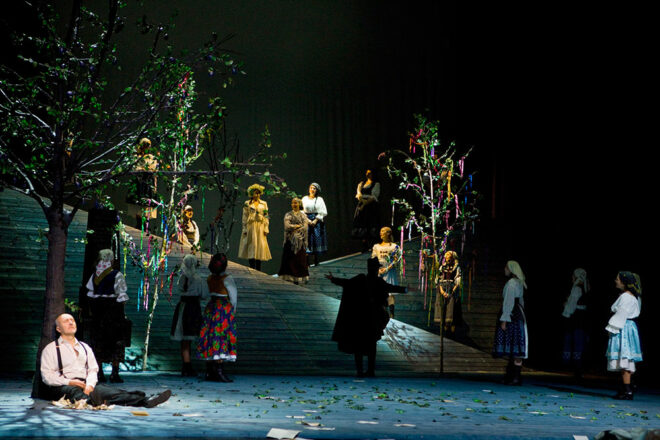 Na scéně z dílny Petra B. Nováka se v kostýmech podle návrhu Lucie Halgašové objeví téměř kompletní umělecký soubor zlínského divadla.