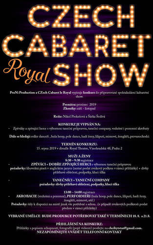 ProNi Production a Czech Cabaret le Royal vypisují konkurz do připravované spektakulární kabaretní show.