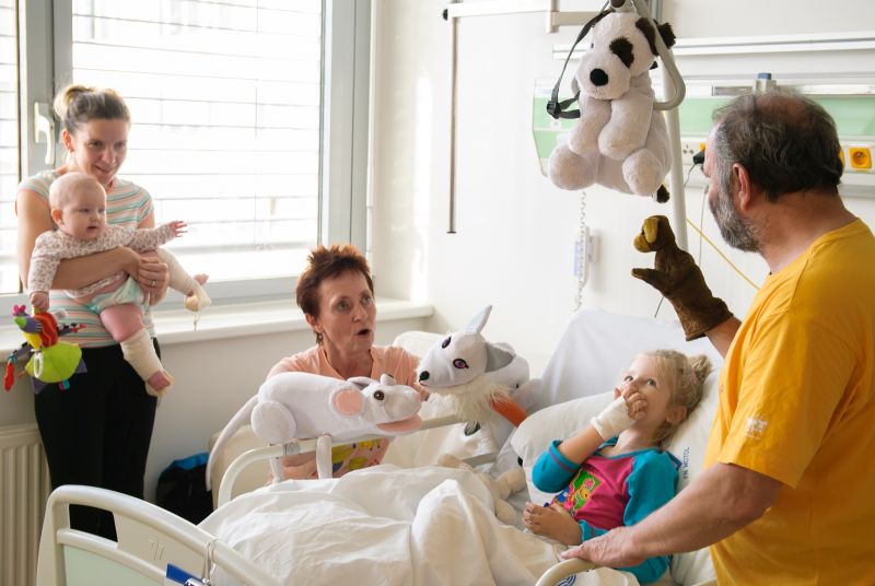 Občanské sdružení Loutky v nemocnici se věnuje práci na poli dramaterapie a působí v oblasti psychosociální péče. Už 11 let Loutky navštěvují dětská oddělení v nemocnicích a léčebnách po celé republice: jen ve Fakultní nemocnici v Motole Loutky plánují letos uskutečnit víc než 200 návštěv dvoučlenných týmů. Ročně takto osloví po celé republice přes 8000 dětských pacientů, odzpívají víc než 6000 písniček a odehrají přes 1000 loutkových představení. Každý rok svůj repertoár rozšiřují o nové příběhy, které jim umožní rozdávat smích v míst ech, kde ho běžně moc není.