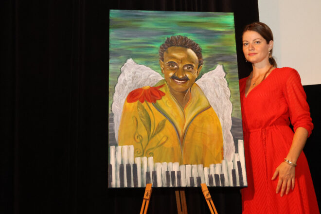 Výtvarnice a současně kamarádka Eduarda Lenka Scheithauerová připravovala obal na CD, na kterém skladatel právě pracoval. Nebylo ale dokončeno, rodina ho však přislíbila vydat. Na pódiu tedy stál alespoň její obraz – „Eddie jako černoch“.