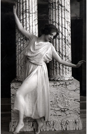 Maud Allen (1873-1956) se narodila jako Beulah Maude Durrant v Torontu, v Kanadě. Jako tanečnice byla velice populární v divadlech počátkem dvacátých let. Diváci z různých sociálních vrstev chodili sledovat hry, komedie, písně, tance. Divadlo v té době bylo spíše moderní varieté show.