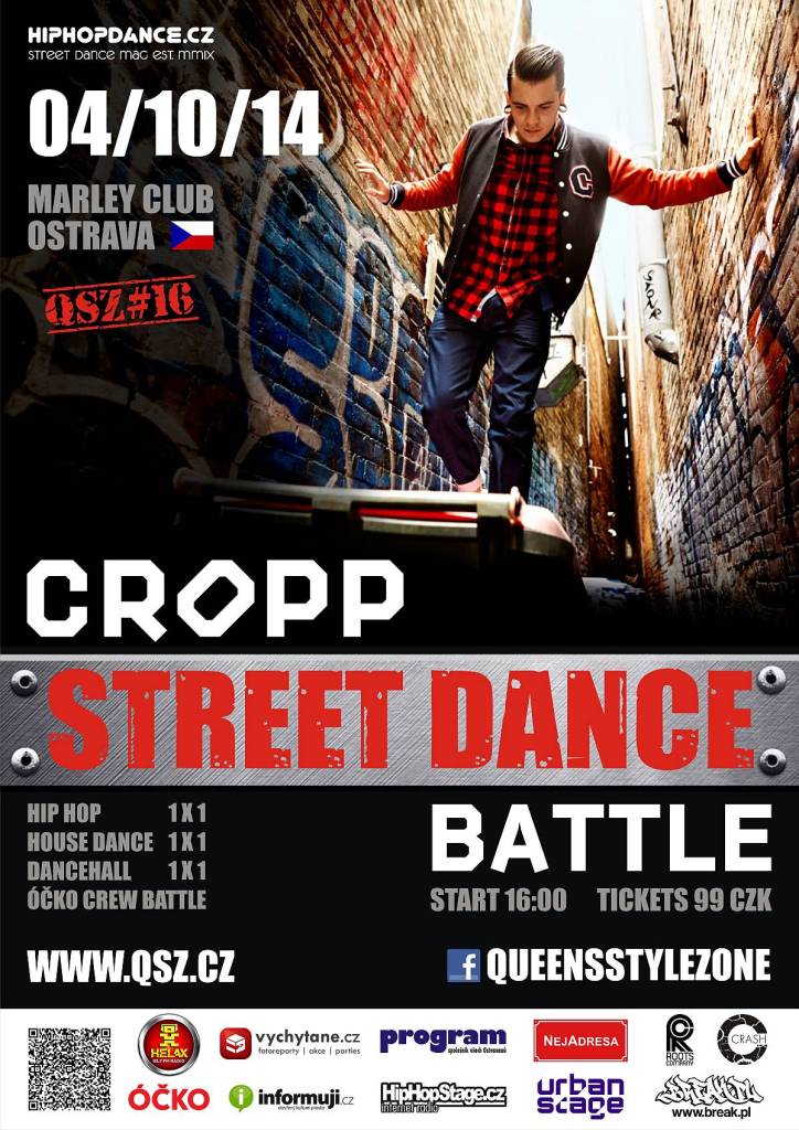 Akce, která nese název Cropp Street Dance Battle, proběhne v sobotu 4. 10. 2014 na výstavišti Černá louka v Ostravě, konkrétně v klubu Marley. Pokud sem zavítáte po 15:00 hod., budete svědky ojedinělé akce plné skvělých tanečních výkonů. Tanečníci z Čech, Slovenska, Polska, ale i dalších zemí se zde totiž utkají v battlech o to, kdo z nich je nejlepší. K vidění bude několik tanečních stylů spadajících pod street dance, ať už jde o nekompromisní hip hop, energický house dance nebo žhavý dancehall.
