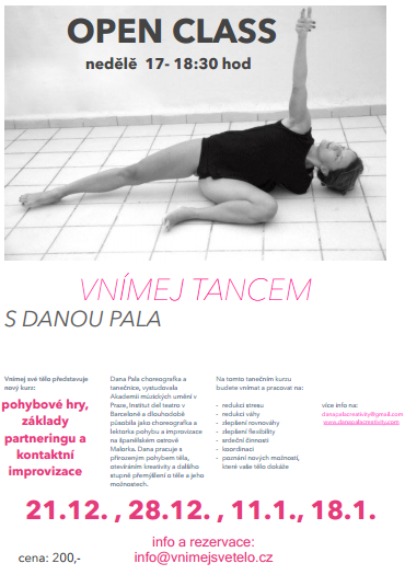 Tanenčí open class ve studiu Vnímej své tělo se koná v neděli 18. 1. od 17 – 18:30, Vyšehradská 43, Praha 2 http://vnimejsvetelo.cz/rozvrh-klubu/.