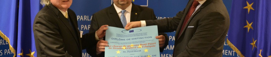 Před pár dny v sídle Evropského parlamentu v Bruselu přijal ředitel Českého chlapeckého sboru Boni pueri Pavel Horák z rukou generálního sekretáře evropských sborů Jean-Pierre van Avermaeta a europoslance Tomáše Zdechovského titul „Sbor Evropské unie“.