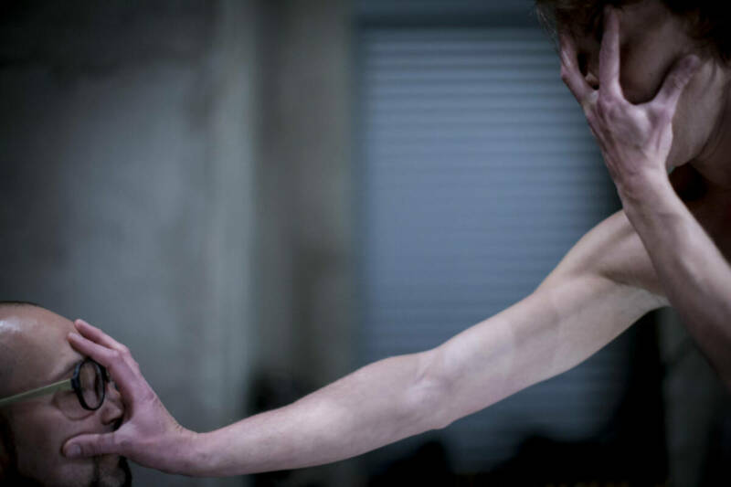 Hned na začátku vystoupila režisérka Miřenka Čechová s vysvětlením záměrů inscenace: řešení intimity dotyku, kam v ní jde zajít, zkoumání tělesnosti – jednotlivce, v páru i ve skupině. A ještě během jejího proslovu přinesl Radim Vizváry nádobu s ledem, do níž ponořil ruce a divák mohl pochopit, že představení už začalo a že se bude jednat o performanci.