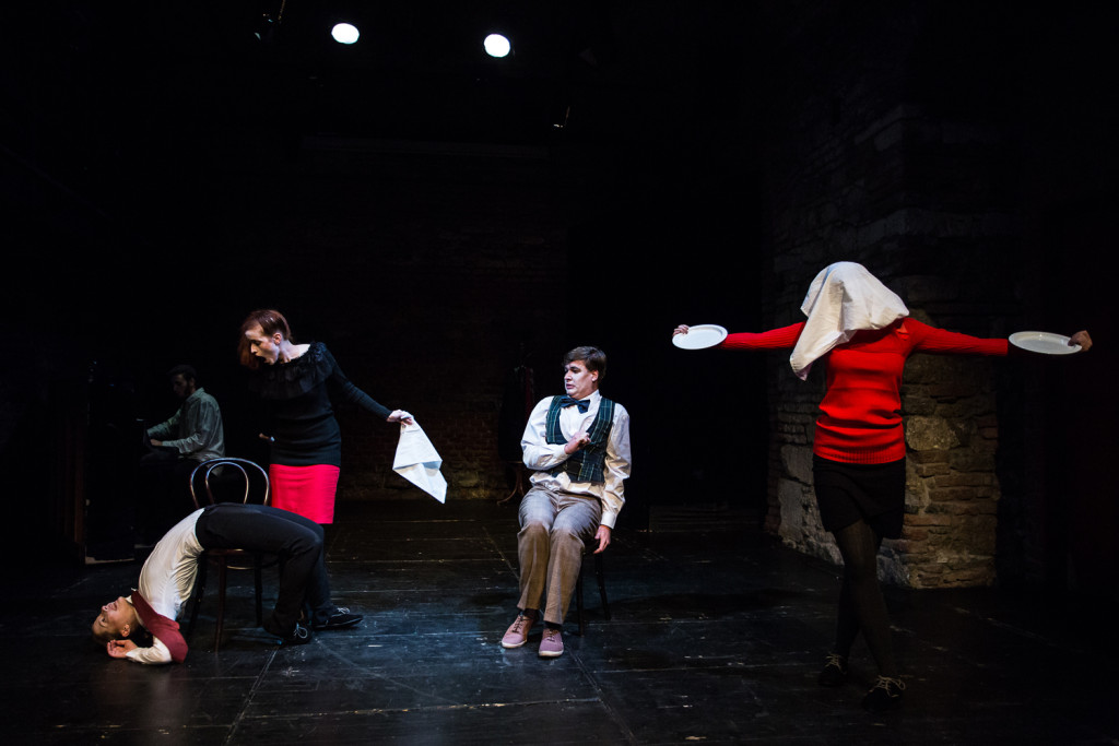 Co se týče dramaturgie, je uvedené představení sérií scének. Od návštěvy restaurace po spor o peníze, smíška, který si utahuje ze všech okolo, až na to sám doplatí, anebo krásné rendes-vouz. Promyšlené a pečlivě vystavěné pohybové struktury jsou někdy doplněné slovem, dodávajícím hře komiksové anebo filmově-groteskní komentáře typu „bang“ nebo „boom“, a příběhy jsou hrány za živého klavírního doprovodu, který typem hudby evokuje kino začátku 20. století. Výrazná stylizace už byla zmíněna, co je u ní ale v případě Spektáklu podstatné, je herecká autenticita. Bez ní by totiž vytahování starých stylů dnes sotva uspělo a aktéři tohoto představení ukázali, že i v exaltovaných postojích je možný herecky nepokroucený výraz, kterému jako diváci věříme, a až ten umožňuje prožití komiky a klaunství v jejich plné síle. Nejvíce to platilo u Terezy Terberové, jejíž číšník v první scénce, ač žensky a s výraznějším úsměvem, evokoval Chaplinova tuláka, a stejně tak i v poslední etudě, už jako slečna na rande měla krásnou jevištní přítomnost i ve ztřeštěných situacích a pozicích.