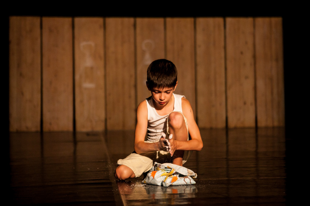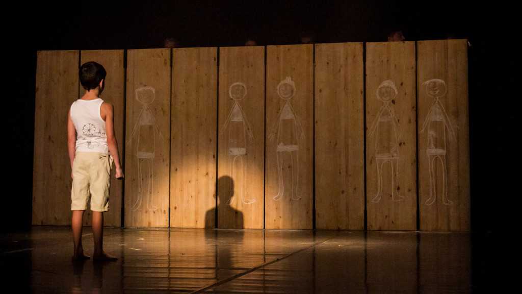 Kdo by si rád nevzpomněl na doby,  kdy se schovával na prázdných dvorech starých domů?  Malý chlapec stojí sám před holou zdí, sní si, fantazíruje a čmárá na zeď, co ho napadne. Jeho sny ožívají. Vtipně  zpracovaný přechod mezi snem a realitou – ze zdi (dřevěných lavic) se náhle objevují   ruce,  kreslí kruhy nebo  dělají sloní choboty. Zeď  padá,  5 mužů vyskočí ven, tedy vlastně 5 kamarádů,  hrají si a  plní chlapci jeho přání.  Tito kamarádi, zdá se, že jsou již dospělí, chlapce neodhání, naopak, věnují mu svůj čas, hrají si s ním, chvíli  mu zprostředkují  houpačku, chvíli letadlo. Opět vidíme dech beroucí výkony akrobatů (Petr Horníček, Lukáš Macháček, Matyáš Ramba, Vítězslav Ramba, Jindřich Panský) a  chlapec  (osmiletý Kryštof Unger, vicemistr ČR ve své kategorii v akrobatické gymnastice) není v ničem pozadu za „dospěláckými“ akrobaty, jeho výkony jsou právě tak na hranici možného.