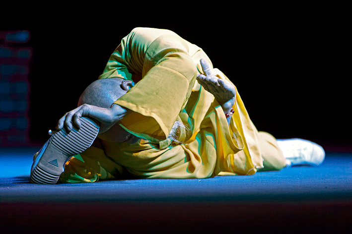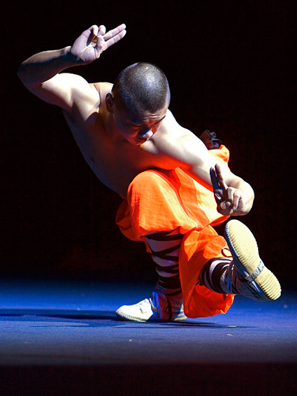 I nejstarší  z mnichů shaolinského kláštera, kterému je více než 60 let, ukazuje, že nemá nejmenší problém s krkolomnými pozicemi. Laik žasne, odborník se diví.
