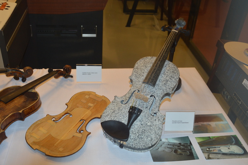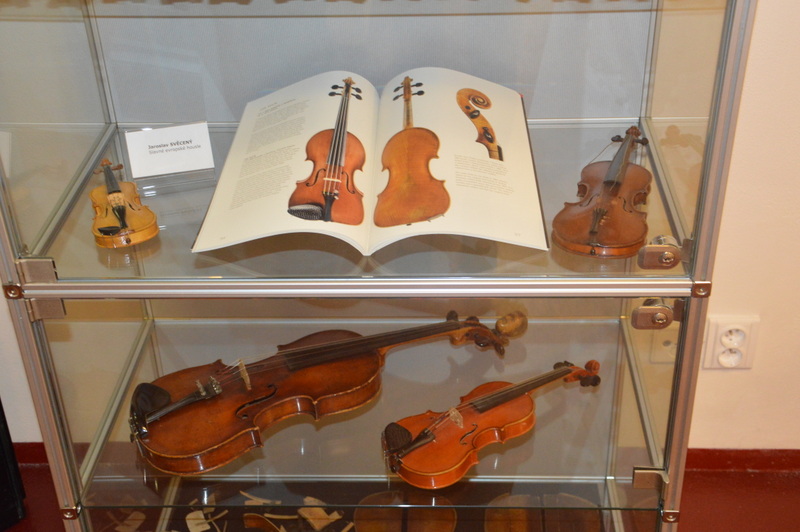 Při první prohlídce se nám představily velmi, velmi staré nástroje, např.  dřevo, ze kterého jsou jedny  stařičké  housle na výstavě  vyrobeny, je  z roku 1602. Ale jak říká autor  výstavy, na stáří se nehledí a dobře postavené housle  hrají skvěle. J. Svěcený předvedl zvuk barokních pražských houslí z roku 1737 a porovnal je s houslemi z roku 1963, se kterými koncertuje.