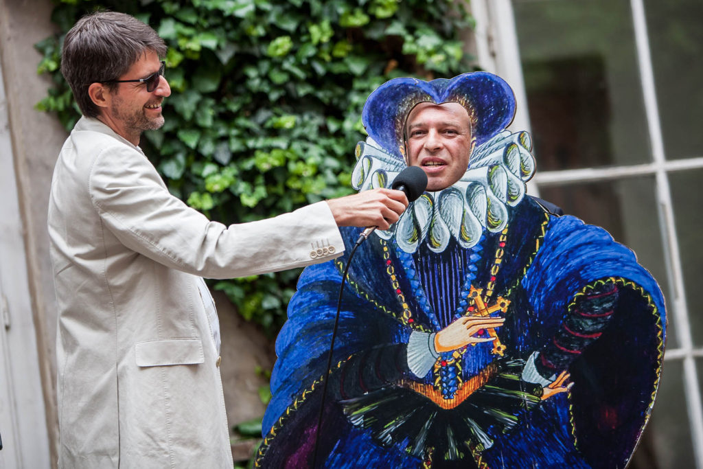 Zahajovací vernisáž, která se uskutečnila v neděli 12. června 2016 na zámku rodiny Bartoň-Dobenín v Novém Městě nad Metují, byla jak jinak než na veselé téma. Sérii vtipů pod názvem Turné černého humoru vystavila kapela ThdeTapTap, která krátce po zahájení koncertovala na náměstí. Nevšední kapela, složená z tělesně postižených studentů a absolventů škol pražského Jedličkova ústavu, vystavuje především kreslené vtipy o lidech s handicapem.„Za celou dobu jsme se setkali jen jednou s nepochopením naší výstavy a to je myslím způsobeno nedostatkem smyslu pro černý humor. Mohu vás ujistit, že náš humor je ve skutečnosti mnohem tvrdší a tak se neostýchejte zachovat nadhled a pobavit se,“ komentuje kapelník Šimon Ornest.