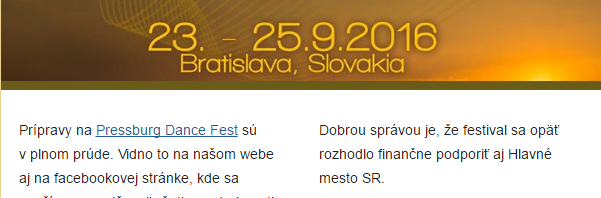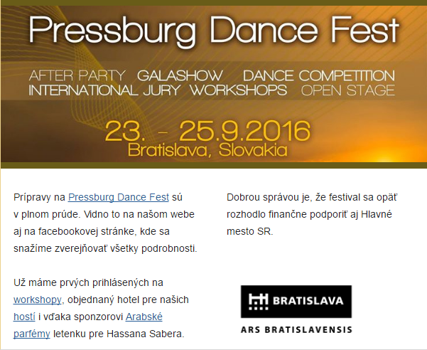 Přípravy na Pressburg Dance Fest 2016 jsou v plném proudu Chcete tancovat na velké show i Vy? Stačí vyplnit přihlášku Taneční magazín