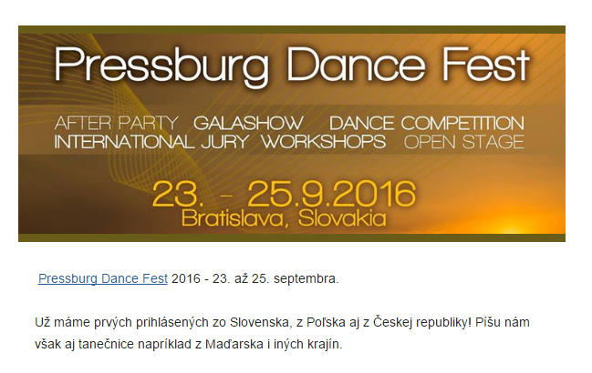 Žhavé letní novinky z festivalu Pressburg Dance Fest outěžící ze Slovenska, z Polska a z České republiky! Zájem projevují i tanečnice z dalších zemí Taneční magazín