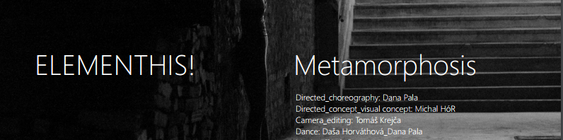 29. září příznivci tance zhlédli v galerii Ex post v Praze 1 zahájení vernisáže ELEMENTHIS_METAMORPHOSIS. Program zahájila jak jinak než tancem Dana Pala a  Daša Horváthová.