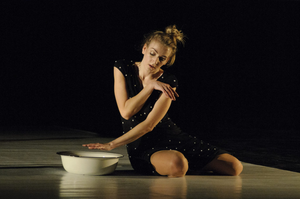 Při dalších snímcích umělkyně nekonečně dlouho obléká a svléká punčochy, snad je i pere v lavoru a nekonečně dlouho věší na šňůru. Štěstí, že jeviště má nějaký konec, možná bychom pozorovali, jak se věší punčochy, ještě další hodinu.