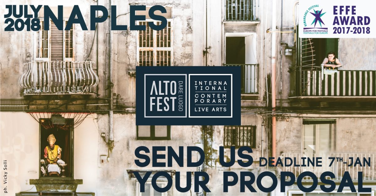 Osmý ročník ALTOFESTU proběhne 29.6. – 8. 7. 2018 v Neapoli. Festival se zaměřuje na současné, mezinárodní, živé umění. Do 20. ledna je možné předkládat návrhy na jedno či více již debutových děl. Altofest je držitelem jedné z šesti cen EFFE, které byly v roce 2017 uděleny mimořádným evropským festivalům.