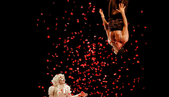 Celkem potřetí se na festivalové scéně na Letné představí francouzští Cirque Le Roux. Diváky vezmou na cestu časem, na rozcestí mezi snem a realitou, do hodiny mezi psem vlkem, kdy se rozostřuje rozdíl mezi přítelem a nepřítelem. V působivé pohybové inscenaci kombinující akrobacii, tanec i divadlo devět umělců popírá zákony gravitace, aby vyprávěli o každodenním životě tří žen žijících v letech 1850, 1960 a 2023. Příběh s názvem Entre Chiens et Louves se odvíjí jako ve filmu a je univerzální výpovědí o stavu našeho světa a lidstva.
