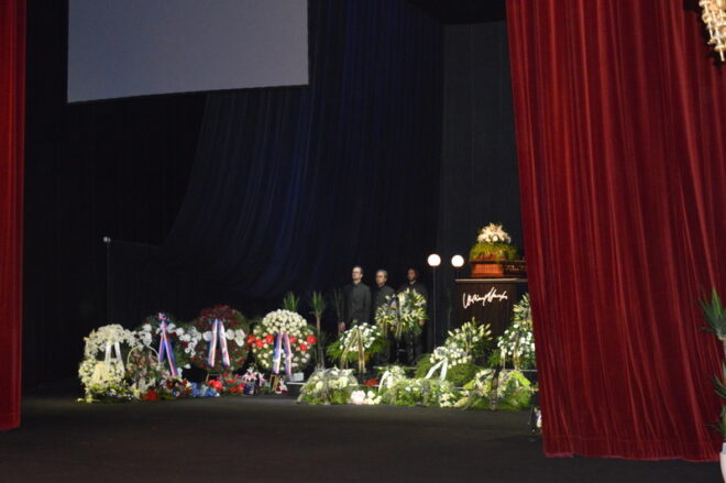 Poté, co dozněla poslední řeč smutečního obřadu, jenž trval asi hodinu, zazněla státní hymna a opona se zatáhla, poslední představení skončilo. Následoval ještě několikaminutový potlesk.
