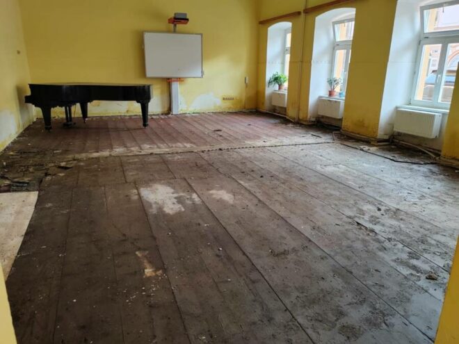 Základní umělecká škola Jeseník v loňském roce oslavila již 75 let. Za tuto dobu poskytla umělecké vzdělání desítkám tisíců žáků. Byla pro ně domovem a útočištěm ve světě společné tvorby. Dne 15. 9. 2024 dvě její budovy zasáhla ničivá povodeň. I přesto, že se v předstihu snažili zaměstnanci některá vybavení odklidit, škoda dosáhla obrovských rozměrů.
