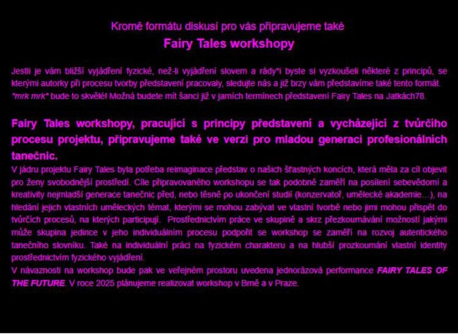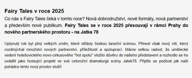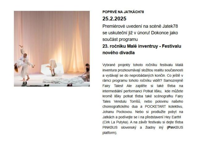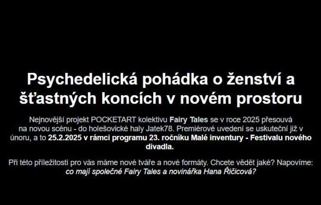Premiéra Fairy Tales na scéně Jatek78, Malá inventura