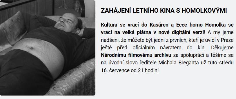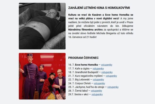 „Silent varianta letního kina je pro nás v tuto chvíli jedinou možnou cestou, i když náš dramaturgický tým tradičně preferuje klasické projekce s ozvučením, při nichž diváci sdílejí společný filmový zážitek. Na druhou stranu sluchátka přinášejí nový komfort při poslechu. Letos jde o první ročník v tomto formátu, takže jsme na reakce a zájem diváků zvědavi. Jako první letošní film uvedeme v předpremiéře novou digitální verzi legendární české komedie Jaroslava Papouška Ecce homo Homolka. Moc děkujeme za spolupráci Národnímu filmovému archivu a jsme rádi, že navrací tento skvost zpátky na velká plátna,“