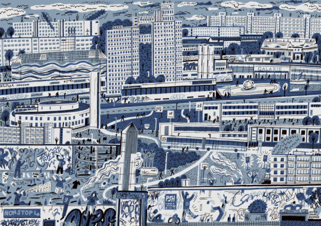 Výstava Sídliště se naopak obrací k prostředí, v němž Galaxie stojí – k Jižnímu Městu, největšímu českému sídlišti. Kurátoři Denisa Václavová a Ondřej Horák pozvali více než dvacet umělkyň a umělců několika generací, mezi nimi třeba Magdalenou Jetelovou, Evu Koťátkovou, Josefa Bolfa, Kurta Gebauera či Tomáše Svobodu. Jejich díla reflektují vizuální podobu i atmosféru sídlištní krajiny, veřejného prostoru a každodenní reality, která je pro mnohé domovem, pro jiné anonymní betonovou džunglí. Výstava propojuje umělecké výpovědi s příběhy místních obyvatel, kteří se do projektu zapojili, a společně vytváří vrstevnatý obraz tohoto „města ve městě“. Výstava tak otevírá debatu o tom, jak se na sídlištích žije dnes, jak ovlivnila předchozí generace a jaký potenciál v sobě skrývají pro budoucnost.