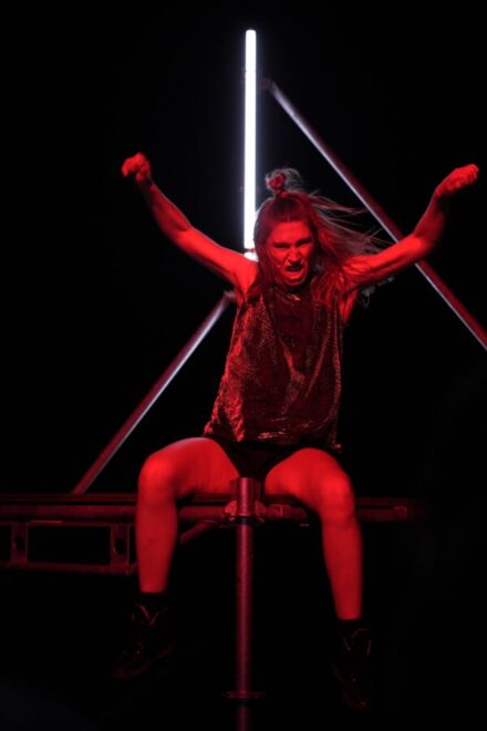Ve dnech 9. a 10. prosince promění dánsko-belgická choreografka  foyer Galaxie v pulsující taneční stage. Její představení The Dancing Public evokuje kolektivní momenty tanečních mánií z minulosti a zkoumá, jak se tělo a pohyb mohou stát prostorem společenského uvolnění po pandemických letech. Intenzivní sólo tvoří směs nezastavitelných pohybů, nepřetržité hudby, rytmického textu a zpěvu, které společně vytvářejí jedinečnou atmosféru sdílené extáze.