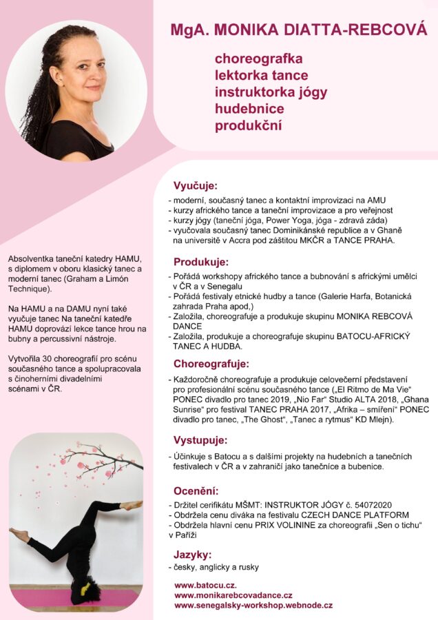 –          lekce afrického tance hostujících  afrických pedagogů tradičního afrického tance v Praze