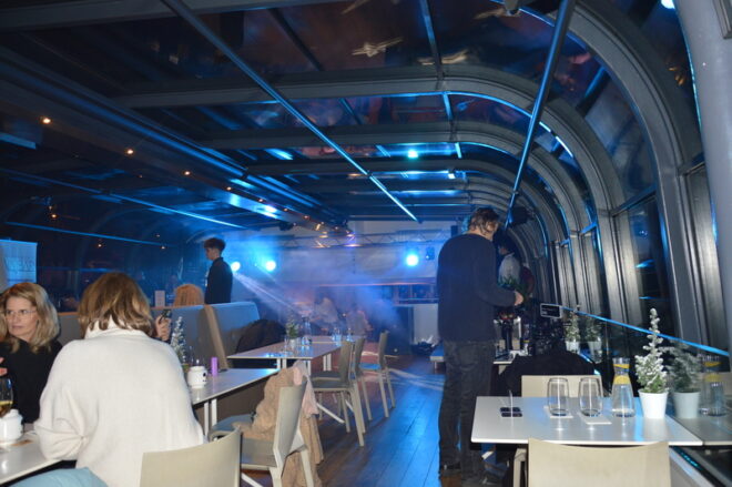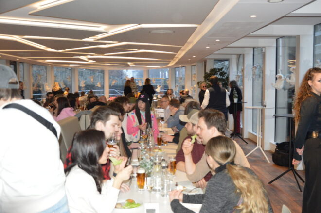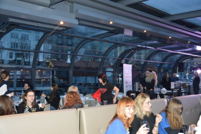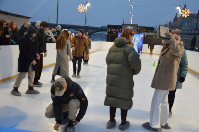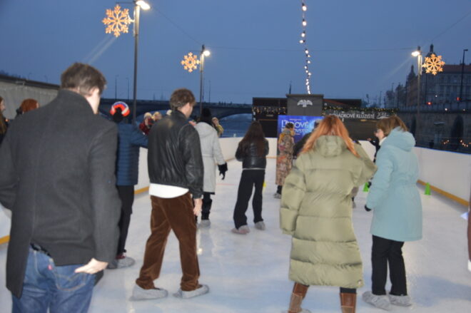 Sportovně-společenské setkání herců, tanečníků a zpěváků z Hudebního divadla Karlín se odehrálo na Vltavě na luxusní elektrické lodi Bohemia Rhapsody, vlastně Grand Bohemia, která zastavila na umělé ledové ploše na pražské Náplavce i ve světelném parku ve Žlutých lázních, obě místa mají skutečně kouzelnou, neopakovatelnou atmosféru, ostatně i celá plavba byla kouzelná.