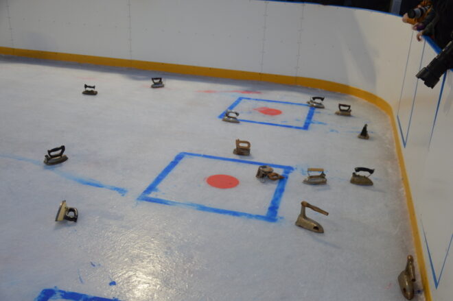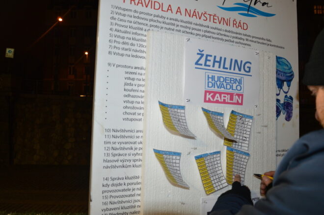 Co je tedy žehling? To je zvláštní a specifická kombinace curlingu a starodávné žehličky. Samozřejmě, že soutěž byla vymyšlená, nikdo hrát neuměl, všichni se dobře bavili a kolem Vltavy na malém kluzišti Petra to hřmělo hurónským smíchem. Organizátor měl sice dost práce bujarý tým ukorigovat, vůbec spočítat body, hlavně, aby zůstaly ty správné čáry na ledě… ale nikomu nic nevadilo. Padaly věty jako: „Jak jste mohli začít hrát, když nemáte soupeře?“ Občas chtěl někdo usmlouvat body, občas někdo padal, jiný zase rozbil žehličku, další pil svařák, zkrátka, o zábavu bylo postaráno. Už jen pozorovat tuhle veselou partičku bylo divadlo samo o sobě.