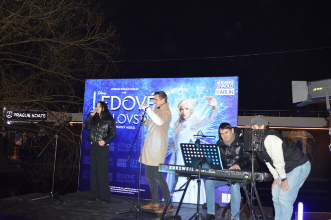 Místo toho si zazpíval píseň z připravovaného muzikálu Ledové království s Ines Ben Ahmed. Tím připravili diváky na to, co mohou zažít při premiéře, která se v Hudebním divadle Karlín uskuteční 12. března 2026.