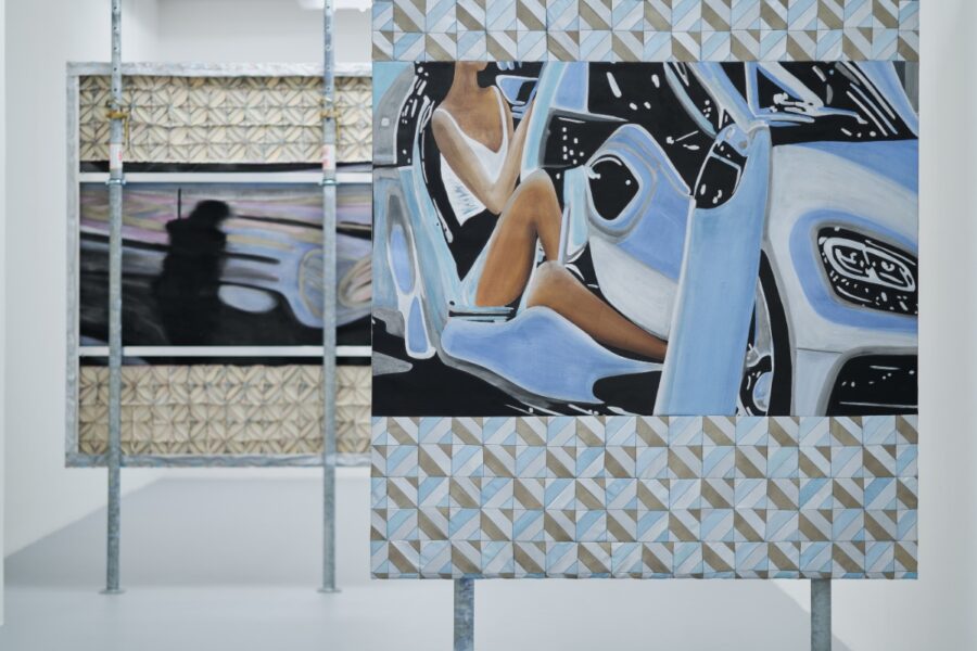 (…) PK: Tvé nové obrazy zkoumají intimní a ambivalentní vztah mezi ženou a její tělesností („objektem touhy“) a symbolem „petromodernity“: luxusním automobilem. Automobil je v Tvých obrazech a objektech svůdný a destruktivní zároveň. Je tato svůdnost pro Tebe především „erotikou formy“ – tedy že přitažlivost tkví v designu, lesku a rychlosti –, nebo jakousi „erotikou moci“, tedy že automobil je způsobem touhy: tj. formou a perspektivou, skrze kterou toužíme po statutu, dominanci, vlastnictví?