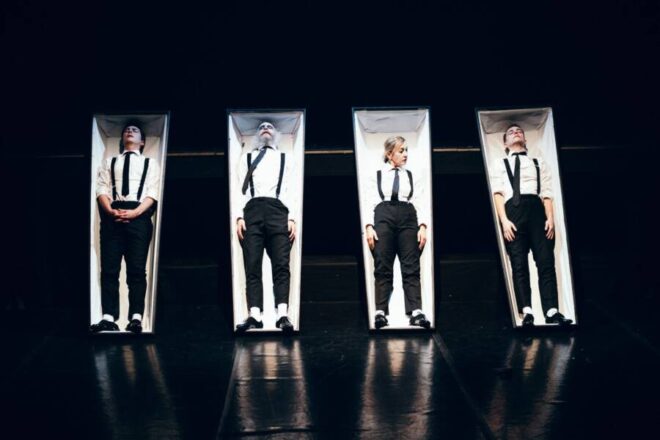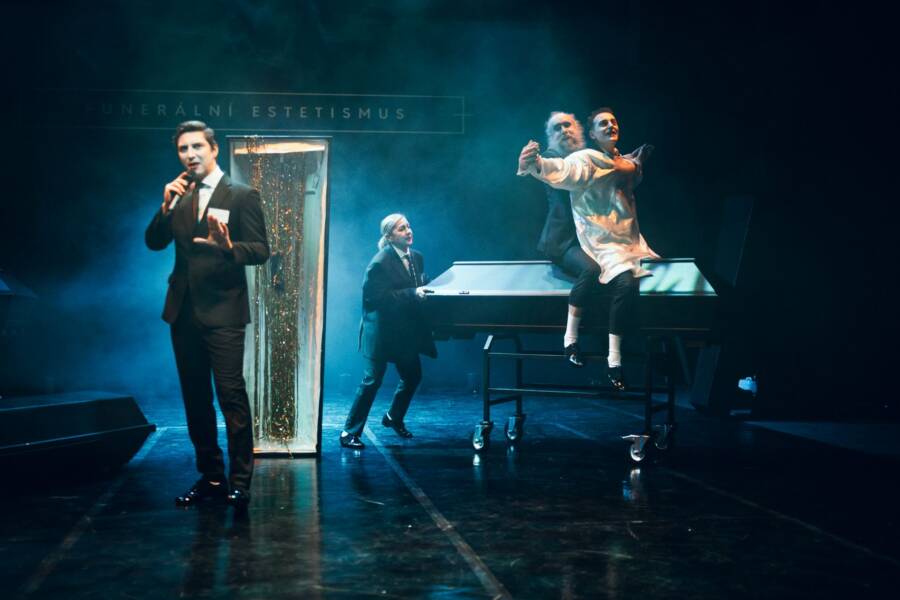 Autorská inscenace  FUNERÁL,  která s černým humorem a poetickou nadsázkou nahlíží na pohřeb jako na přirozenou součást života, má za sebou zdařilou premiéru. Kabaretní průvod posledním rozloučením mění obávanou tryznu v rituál plný vzpomínek, smíchu, přijetí a groteskních divadelních etud. Čtyři průvodci: Vanda Hybnerová, Michal Kern, Martin Donutil a Marek Zelinka se ve Slévárně divadla La Fabrika vydají na nečekaně hravou cestu pietou opět 26. 4., 25. 5. a 1. 6.