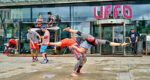 Čtyři performeři v šestimetrové aréně obklopené diváky