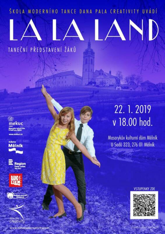 Předposlední lednový týden, konkrétně v úterý 22. ledna se můžete osobně přesvědčit v Mělníku, jak přední tanečnice a choreografka Dana Pala pojala jevištně slavný filmový muzikál „La La Land“! Konkrétně od šesté hodiny večerní v Masarykově kulturním domě.