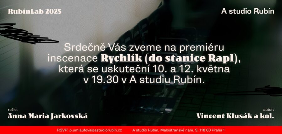 V listopadu a v prosinci A studio Rubín uvede také dvě reprízy projektů z výzvy RubínLab. První z nich je Ďábelská říše od NOUS kolektivu. Tuto performativní multimediální instalaci, která diváky vtahuje do říše objektů, světla, speciálních projekcí a sound designu, mohou diváci zhlédnout v češtině 26. listopadu a angličtině 27. listopadu. Jediná performerka, Jovita SIU Ji Chin, provází publikum poetickým i znepokojivým mikrosvětem. Druhým projektem je autorská inscenace Vincenta Klusáka v režii Anny Marie Jarkovské Rychlík (do stanice Rapl), která zkoumá téma radikalizace, frustrace a sociální nejistoty mladé umělecké generace. Její repríza se odehraje 13. prosince.