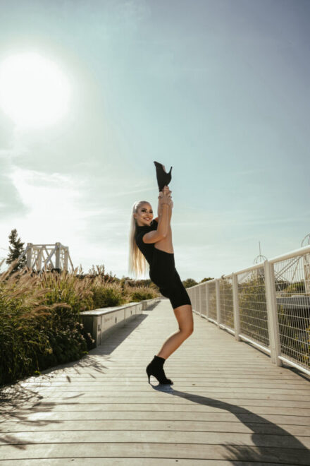 „Nejlépe se nyní cítím asi v Heels Dance. Podpatky jsem nosila takové plastové na hraní už ve svých 3 letech. Jako teenager jsem podpatky nosila snad i do lesa. Ve svých 24 letech jsem navštívila lekci High Heels u Ginger a je to jako láska na první pohled. Hned jsem věděla, že to je to ono, co chci tančit. Lyrical dance, klasický tanec i Contemporary miluji, ale Heels dance cítím, že jsem já. Tanec na vysokých podpatcích nemá jen jednu formu, můžete na nich tančit street dance, různé fiusion styly, každý lektor si tam může vnést sebe a mě osobně extrémně baví a naplňuje ženskost, smyslnost, elegance, technika a sem tam prvky akrobacie – to jsou moje Heels Dance.“