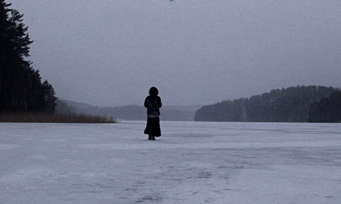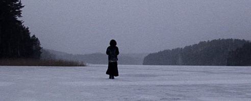 Dvě postavy tančící na zamrzlém jezeře, v dálce panské sídlo, temný, hustý švédský les a zádumčivá zimní krajina dotváří obraz zkázy.