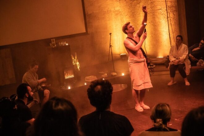 s environmentální udržitelností. Divadelní sauna je také prozatím posledním výstupem dlouhodobého projektu EDUC8PEOPLE, pod jehož hlavičkou kolektiv pořádá přednášky a vzdělávací aktivity, a to v návaznosti na otevřený výzkum k připravovaným projektům.