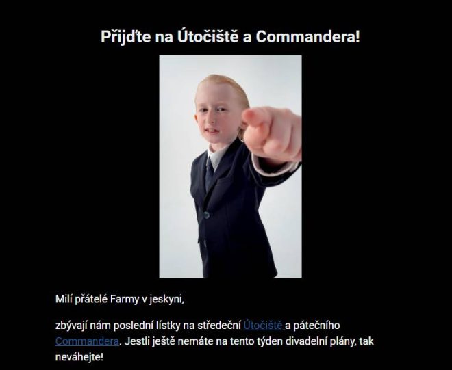Možnost zapojit se do tvorby nových projektů a případné účinkování v dalších projektech Farmy v jeskyni