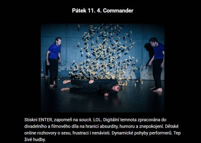 Pro projekt „Commander“ hledá muže-performery. Uzávěrka přihlášek 5. 4. 2021.