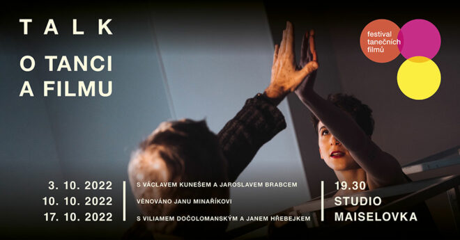 Festival tanečních filmů připravil diskusní a filmovou minisérii s názvem TALK O TANCI A FILMU s vybranými tvůrci, choreografy a režiséry. V pražském Studiu Maiselovka se během tří říjnových večerů setkají výrazné osobnosti současného tance s výjimečnými českými režiséry. První večer se koná už příští pondělí 3. 10. a představí se v něm choreograf Václav Kuneš a režisér Jaroslav Brabec.