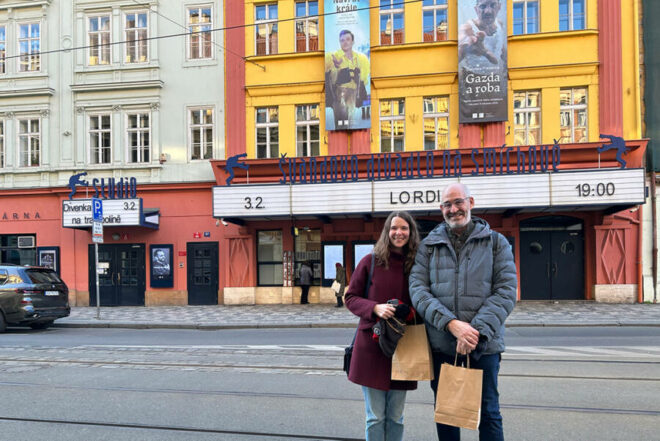 „V září 2025 podnikneme větší tour do Toronta, Chicaga, Los Angeles a New Yorku. V Torontu a Chicagu uvedeme pod Záštitou Hlavního města Prahy autorskou inscenaci Dívenka na trampolíně, která u nás měla premiéru začátkem roku 2025. Za pozvání do Los Angeles může tak trochu naše inscenace AI: Když robot píše hru. Jsme tam pozváni mimo jiné jako účastníci panelové diskuze na konferenci EaglCon o spekulativní sci-fi, kterou pořádá Kalifornská státní univerzita. Byli jsme požádáni o příspěvek o Karlu Čapkovi a R.U.R. v současném kontextu vývoje AI. Proběhne tu i scénické čtení nové adaptace R.U.R. od Talene Monahon, na jejímž vzniku jsme se rovněž podíleli. Pak se přesouváme do New Yorku, kde proběhne druhá fáze realizace projektu R.U.R., na níž spolupracujeme s The Shakespeare Centre of Los Angeles. Do New Yorku na jaře 2026 odvezeme i Dívenku na trampolíně, kde by se tu měla stát součástí programu festivalu Rehearsal for Truth organizované Vaclav Havel Center. V září 2025 bude naše inscenace AI: Když robot píše hru součástí doprovodného programu světové výstavy Expo 2025, naše inscenace totiž zaujala tamní akademiky z Univerzity v Ósace.“ vypočítává Daniel Hrbek.