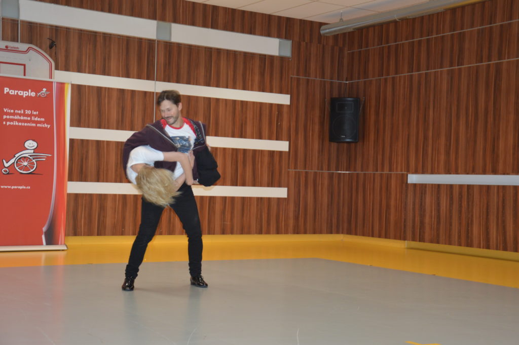 Martina: „Pro mě je to pořád výzva, neustále. I každý tanec. Je to prostě boj a občas dostávám od toho tance pořádně „na prdel“, ale snažím se. Nejsem zkrátka tanečnice, vždycky jsem byla bojovnice. Ale každá překážka se dá nějak překonat, prostě makám, nestěžuji si, je to zkrátka těžké. Pokud jde o vozíčkáře, to jsou pořádní bojovníci. Zdraví lidé si to neumí představit, čemu všemu oni musí čelit. Já jsem před lety měla vážný úraz a lékaři mi řekli, že se na jednu nohu už nepostavím. Když jsem potřebovala se někam rychle dostat, tak mě rodiče poslali na vozíku, abych byla zkrátka rychlejší. V ten okamžik jsem si uvědomila, jak je to těžké. Nejsou všude bezbariérové přístupy, sem tam se člověk nemůže někam dostat sám, je opravdu odkázaný na pomoc ostatních. Je obdivuhodné, jak to lidé z Centra Paraple zvládají a jsou stále v pozitivním rozpoložení.“