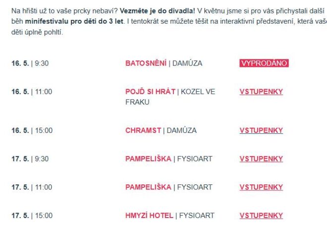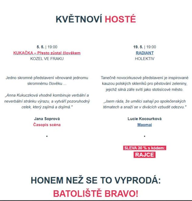 V neděli 11. 5. slaví všechny maminky svůj den. Řekněte té své letos DÍKY něčím originálnějším, než je řezaná květina. Darujte jí raději společně strávený čas a pozvěte mamku do divadla. Vybírat můžete z našich květnových nebo červnových představení, anebo ji překvapte dárkovým poukazem.