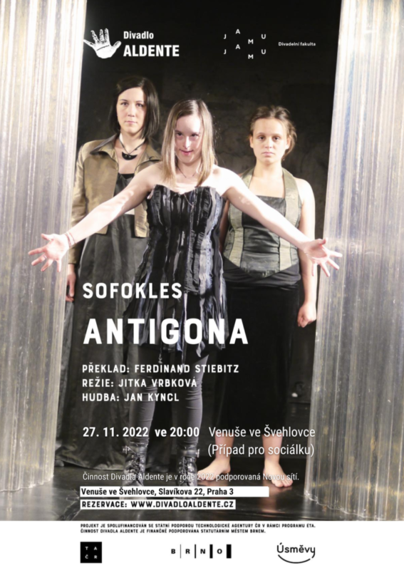 Nová sít zve na představení Antigona Divadla Aldente, které se uskuteční 27. 11. od 20:00 ve Venuši ve Švehlovce v rámci festivalu Případ pro sociálku.