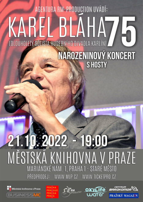 Chcete se také zúčastnit jeho narozeninového koncertu? Zbývající vstupenky v hodnotě 250 Kč si můžete zakoupit na pokladně Městské knihovny v Praze (Mariánské náměstí 1) nebo na jejích internetových stránkách. Konkrétně na tomto odkaze: https://www.mlp.cz/cz/akce/e21470-koncert-k-75.-narozeninam-karla-blahy/.