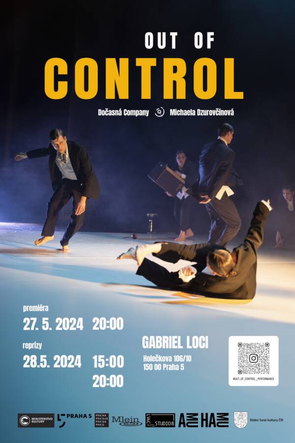 Lístky na premiéru a reprízy představení Out Of Control jsou v předprodeji přes platformu GoOut. Více informací naleznete na Facebookové události nebo na webu Dočasné Company. Projekt finančně podpořili Magistrát hl. m. Prahy, Ministerstvo kultury ČR, Akademie múzických umění v Praze, Státní fond kultury a Praha 5.