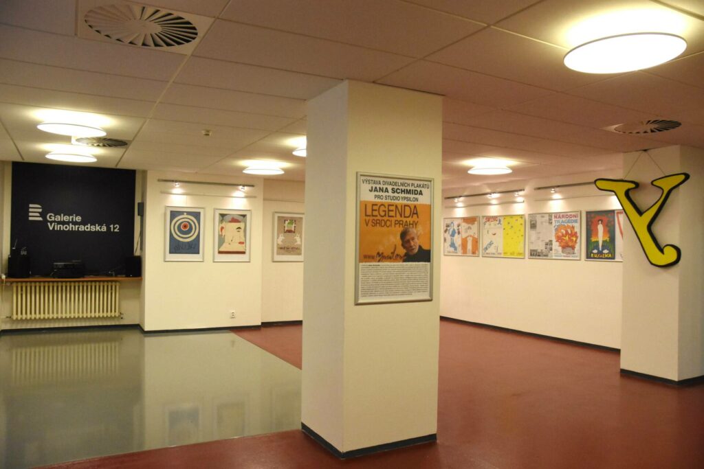 Aktuální výstavu plakátů Jana Schmida jsme představovali těmito slovy: „Osobnost Jana Schmida – k jehož jménu se váže hned několik (uměleckých) profesí, neboť je režisérem, dramatikem, spisovatelem, výtvarníkem, hercem, ale i profesorem pražské DAMU – se vyznačuje neobvyklou univerzalitou, širokým rozpětím a dostředností zároveň. Je z vzácného rodu lidí, kterým je vlastní merkuriální způsob myšlení. Lovec příznivých okamžiků. Provokatér nápadů, mistr nečekaných proměn se schopností orientace a rychlého rozhodování. Takto s myšlenkou „setrvávat vždy tam, kde se věci mění“ v roce 1963 založil ,STUDIO YPSILON´ – divadlo, jemuž svým originálním syntetizujícím způsobem vidění a chápání vtiskl nezaměnitelnou podobu, styl a poetiku, kterou od počátku, s důrazem na výrazové herectví, strategicky formuje a oživuje metodou improvizace, s využitím tvořivého potenciálu náhody. Jelikož Schmidova původní profese je výtvarnická, pro Studio Ypsilon v kontinuitě už více než padesáti let navrhuje také plakáty, jejichž nezaměnitelný rukopis, úzce provázaný s poetikou divadla, se stal neodmyslitelnou součástí vizuální image této dnes již legendární divadelní scény. Tentokrát se spíš menší výstava Schmidových afiší, odjakživa se pro svou výraznou osobitost zcela vymykajících běžné plakátové produkci, soustřeďuje především na autorovu tvorbu ze současnosti a nedávné minulosti, s jen malým doplněním o plakáty z raného období Studia Ypsilon jako připomínky souvislostí a kontinuity.“