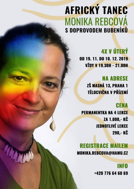 V lekci afrického tance, se především naučíte dobře orientovat v rytmu. Vyzkoušíte si základními pohyby a jednoduché kroky západoafrických tanců s jeho autentickým hudebním doprovodem, který je s tancem těsně propojen. Bubenický doprovod – Monika, Eduardo a Filip.