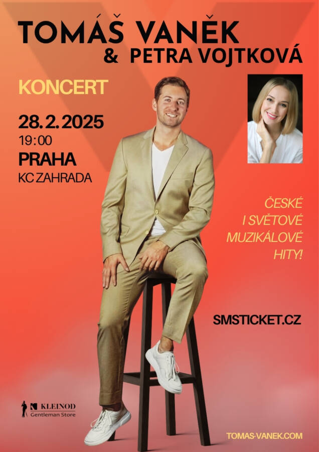 Tomáš Vaněk, zpěvák a herec známý z mnoha hlavních rolí světových muzikálů, jako Fantom opery, Čarodějka, Ples Upírů a dalších, se rozhodl pro svůj další sólový koncert spojit s Petrou Vojtkovou, známou muzikálovou zpěvačkou a manželkou herce a zpěváka Romana Vojtka. Koncert se uskuteční 28. 2. od 19 h v Kulturním centru Zahrada v Praze.
